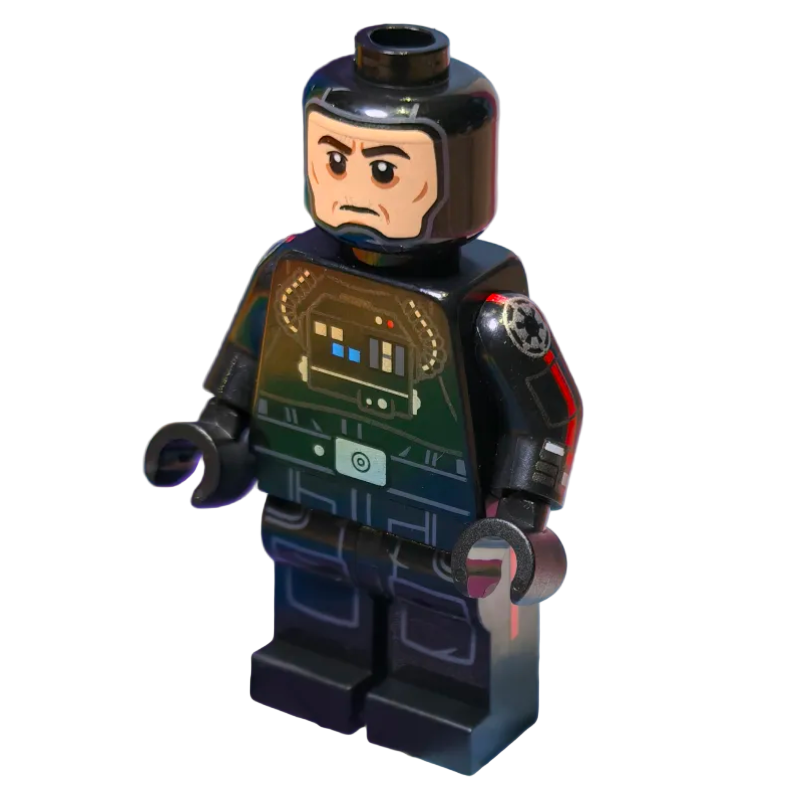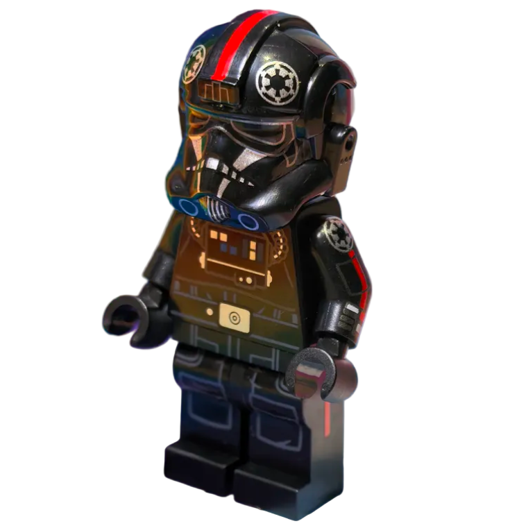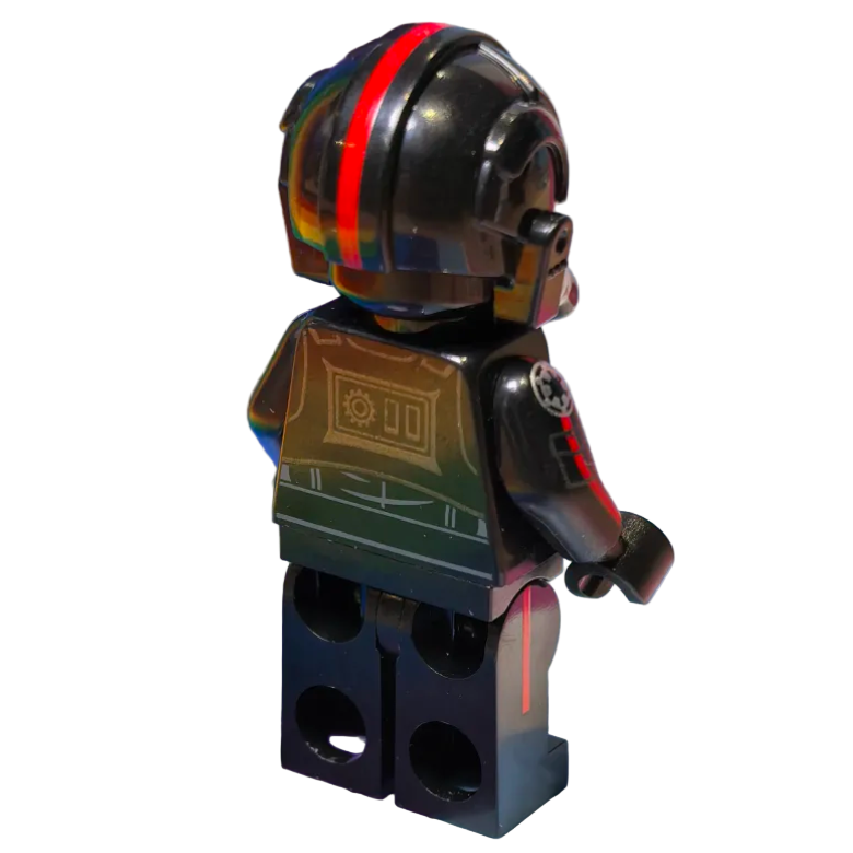 Pad printed figure on all official parts with an official helmet. Includes a single-sided printed head.