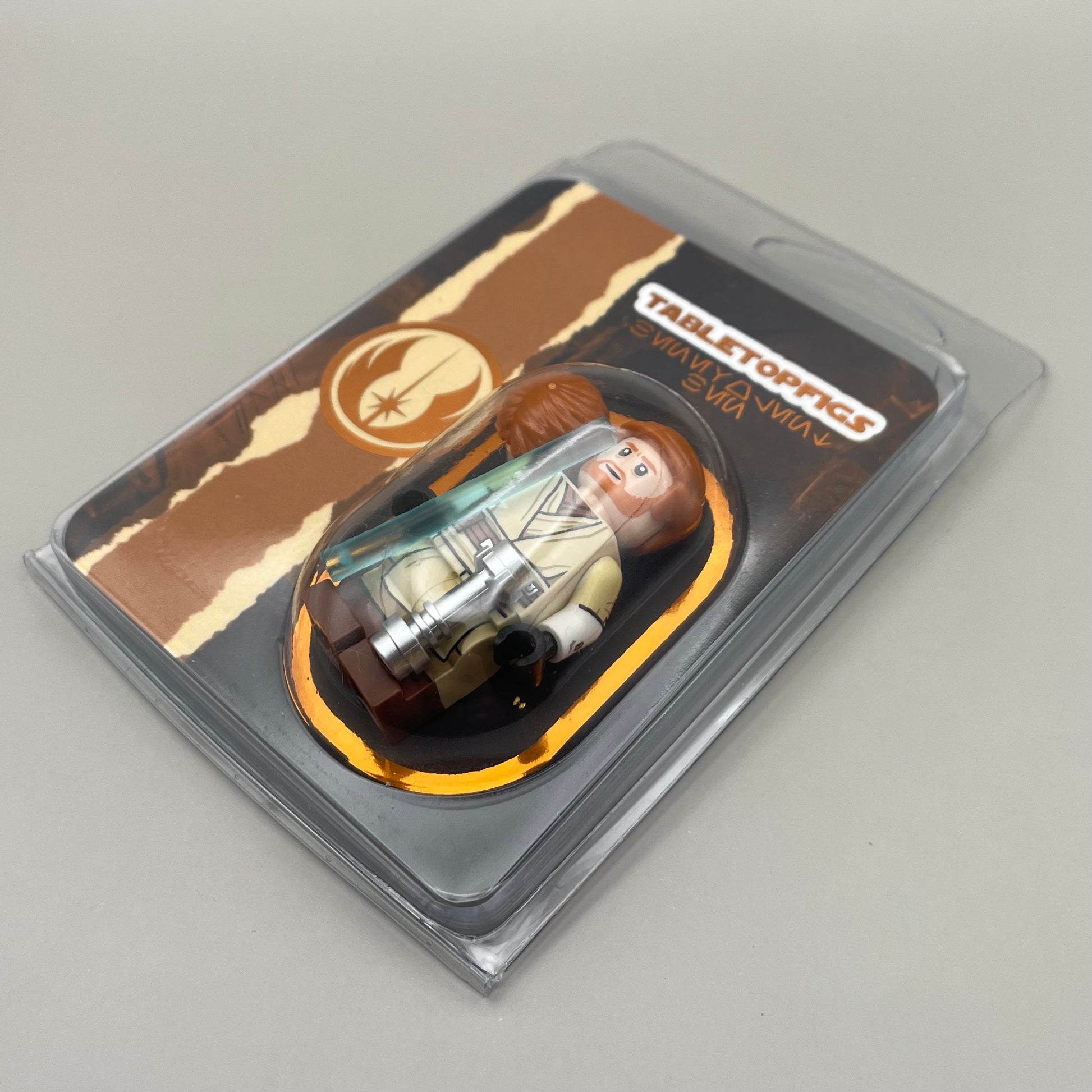 Pad printed figure on all official parts with a double-sided head and custom blister packaging. Includes an official lightsaber and alternate hair piece.
