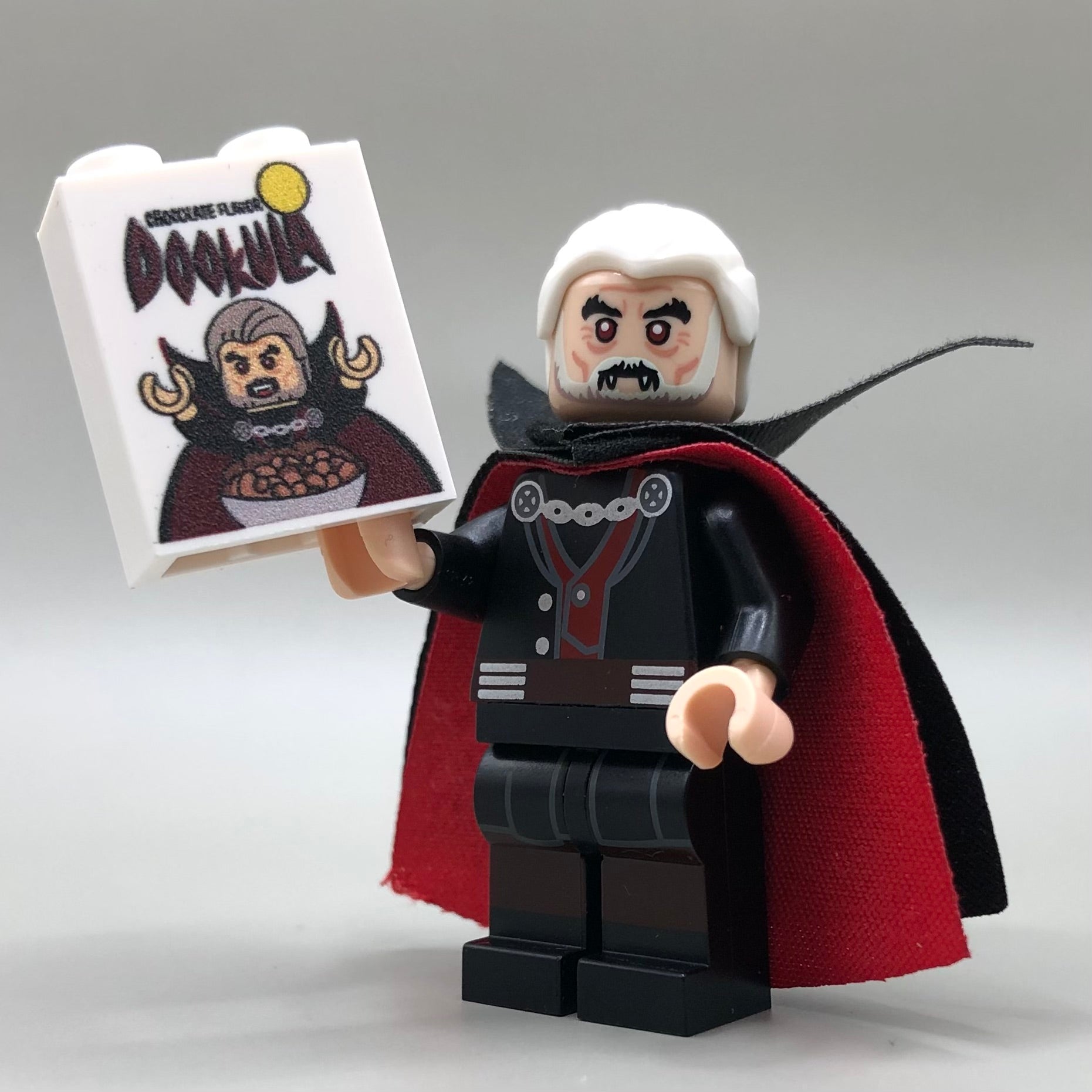 Pad printed on all official parts. Includes custom capes and a UV-printed cereal box brick.