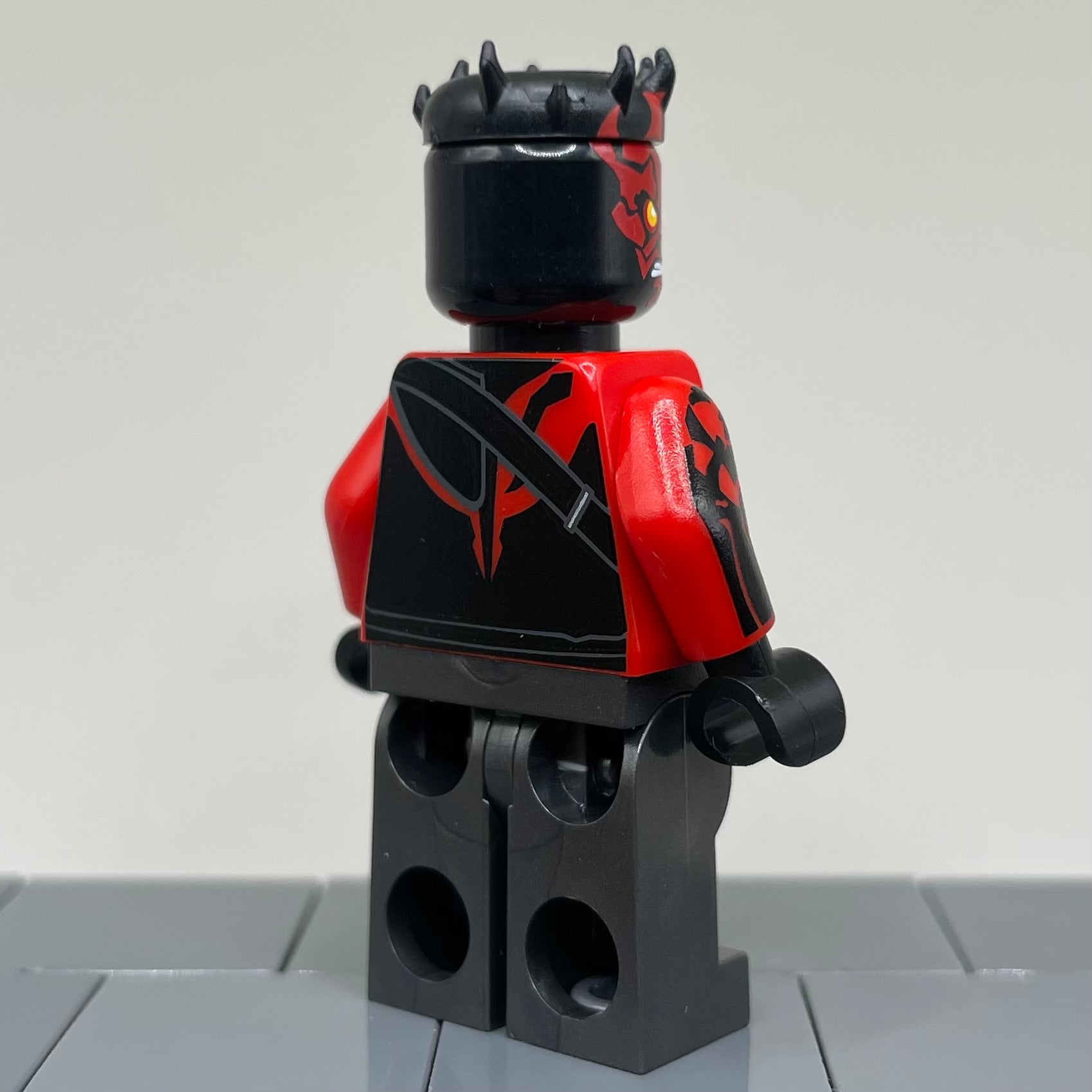 Pad printed on all official parts. This version of Darth Maul features an official horn piece and metallic gray legs.