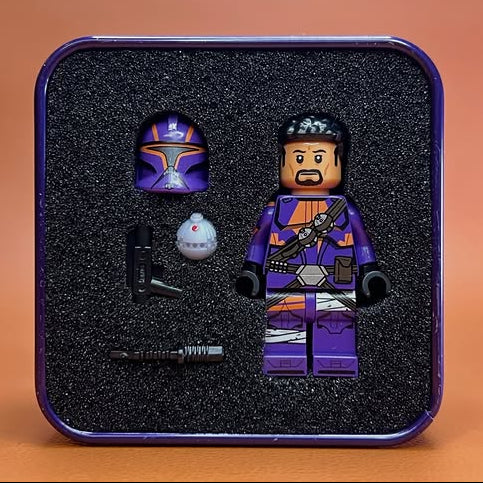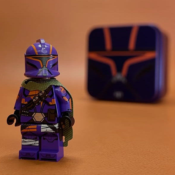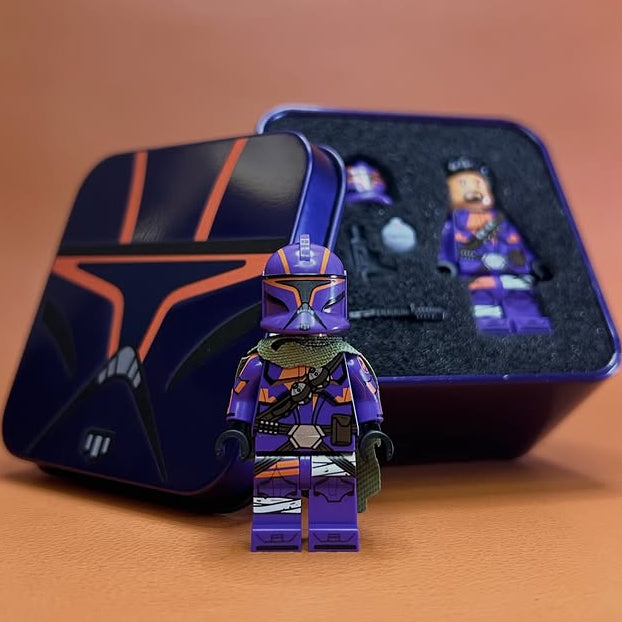 Pad printed on all official parts with a custom helmet. Includes a custom blaster, knife, thermal detonator, numbered card, and collector's box.