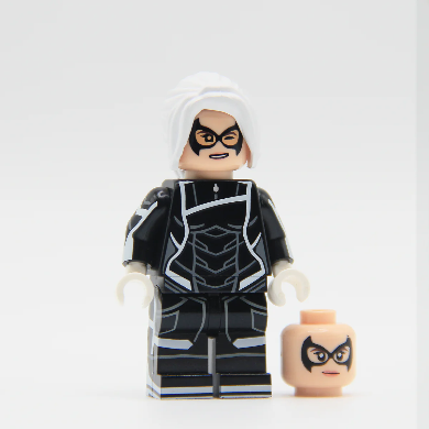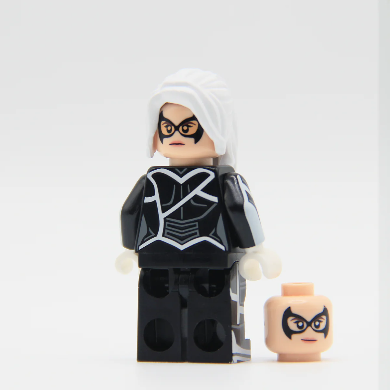 Pad printed figure on all official parts. Includes an extra head with a winking expression.